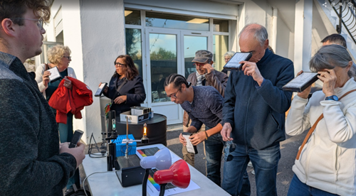 Des élèves du lycée se sont portés volontaires pour animer un stand sur la composition des étoiles un samedi après midi au Millé à L’Isle d’Abeau. Ils ont expliqué à un public intéressé comment chaque gaz à sa propre signature, ce qui permet de la retrouver dans la lumière qui nous vient des étoiles. Ils ont également pu aborder l’atmosphère des exoplanètes, sujet d’actualité pour les chercheurs. C’est une centaine de personne qui a profité de petites expériences simples et de petits jeux pour comprendre ce phénomène passionnant.